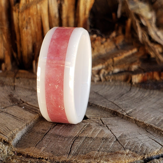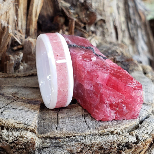 Arctic Rose Ring - Rhodonite Crystal Inlay