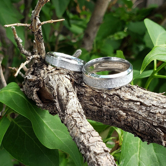 Couples Moldavite Crystal Inlay Ring Set