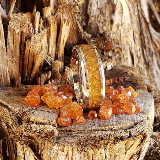 Courage Ring - Spessartine Garnet Crystal Inlay