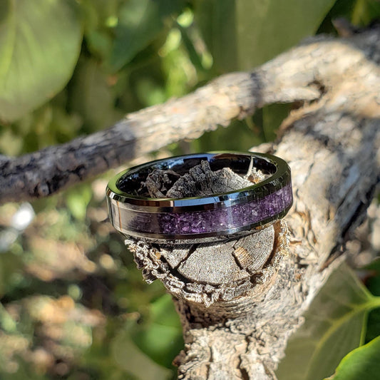 Dark Serenity Ring - Amethyst Crystal Inlay