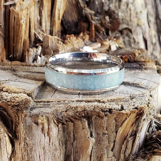 Sky Blue Ring - Blue Aragonite Crystal Inlay