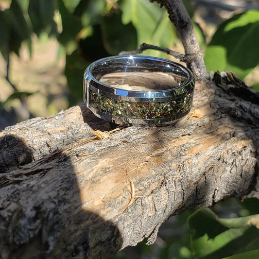 Rainbow Gold Ring - Chalcopyrite Crystal Inlay