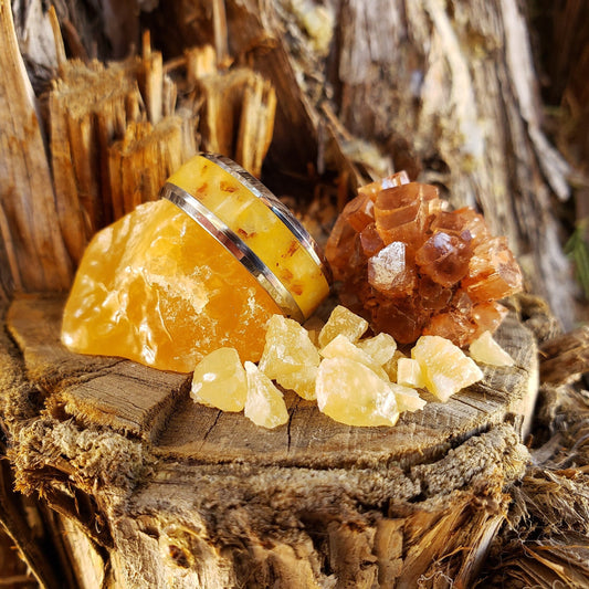 Nectar Glow Ring - Orange Calcite & Aragonite Crystal Glow Inlay