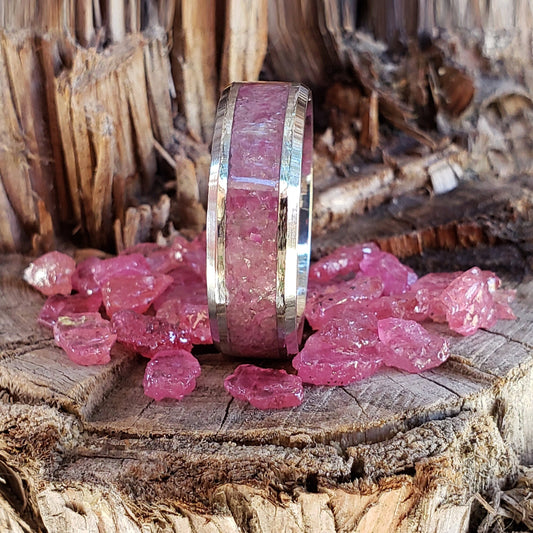 True Love Ring - Rose Quartz, Rhodonite & Garnet Crystal Inlay