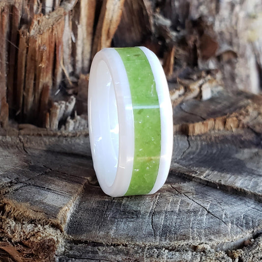 Hawaiian Snow Ring - Peridot Crystal Inlay