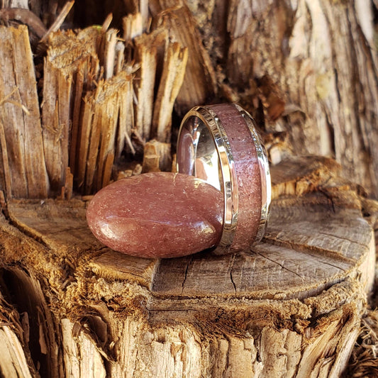 Soul Petals Ring - Rhodochrosite Crystal Inlay