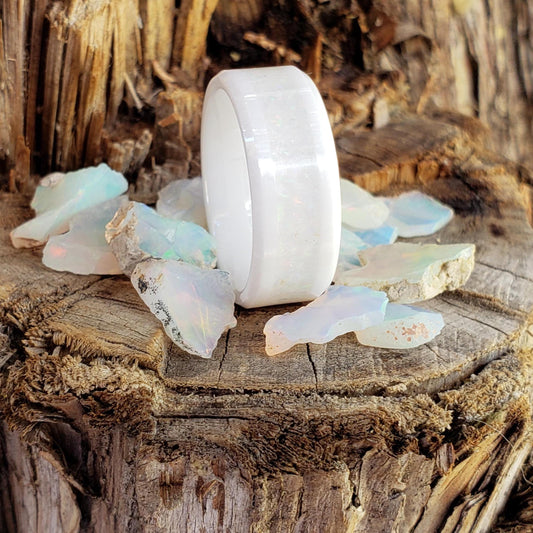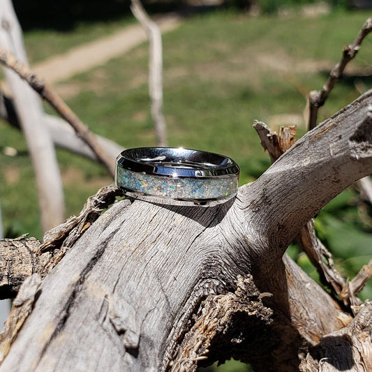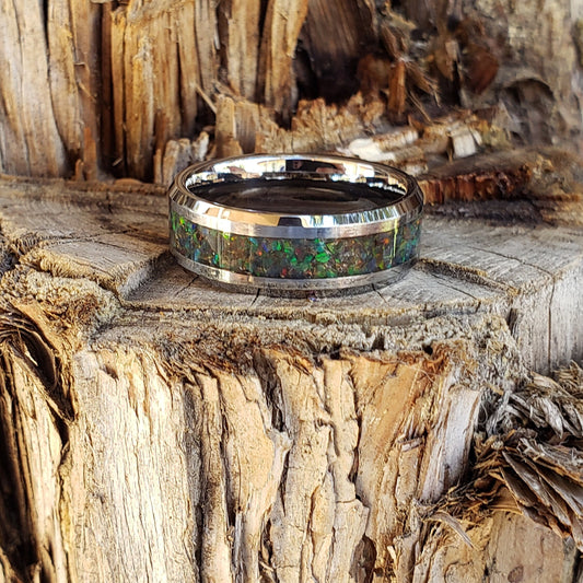 Runefire Ring - Green Welo Opal Crystal Inlay