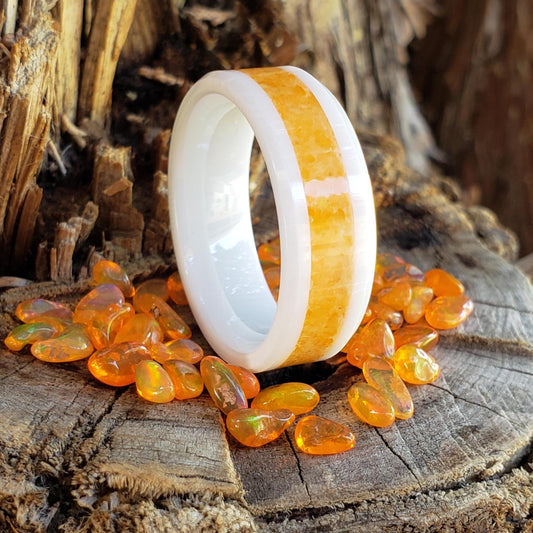Sunfire Ring - Orange Welo Opal Crystal Inlay